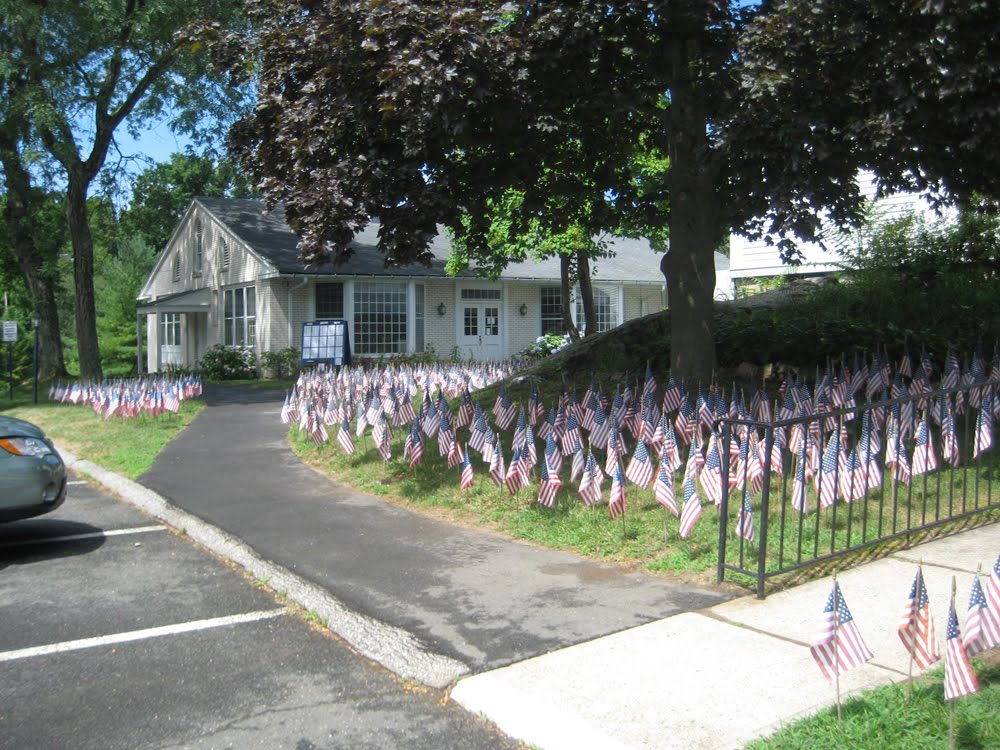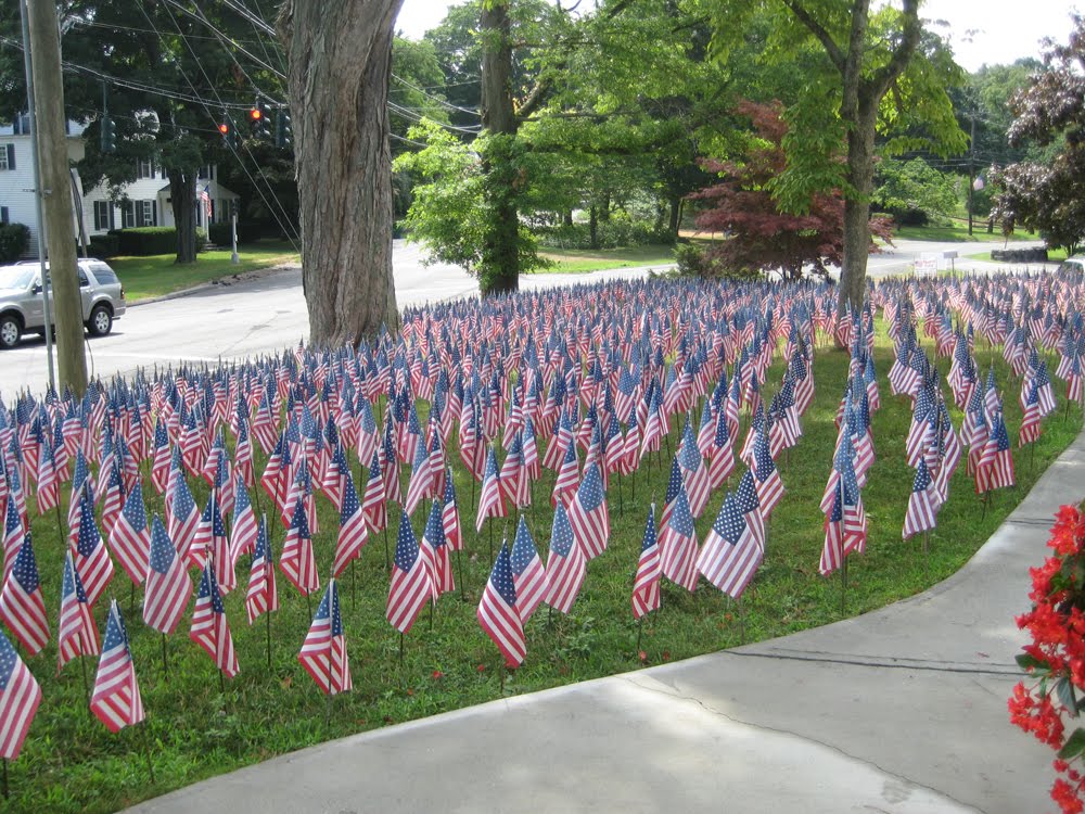 Field of Flags. Sue Slater, Joni Park, military veteran